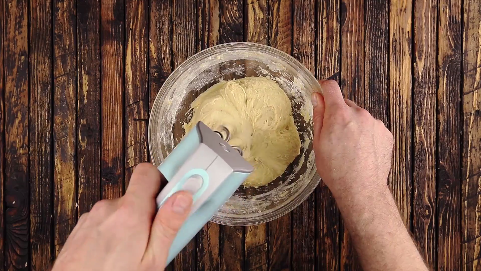In einer großen Schüssel mischst du Mehl, Trockenhefe, Eier und Salz. Dazu gibst du die erwärmte Milchmischung und knetest die Masse dann zu einem gleichmäßigen Teig, den du abgedeckt eine Stunde gehen lässt.