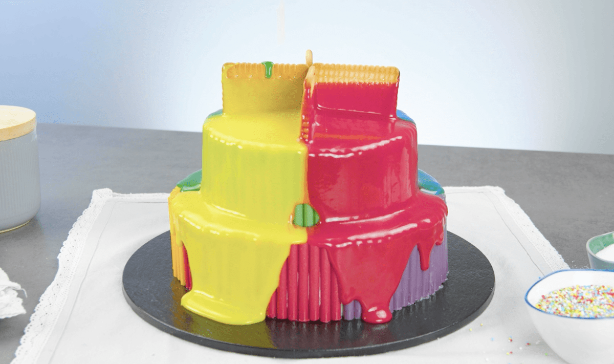 2. Zweistöckiger Kuchen mit bunter Glasur