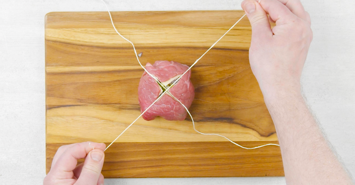 3.4 Umwickle dann die Kugel entlang ihrer Schnittkanten mit der Bratschnur.