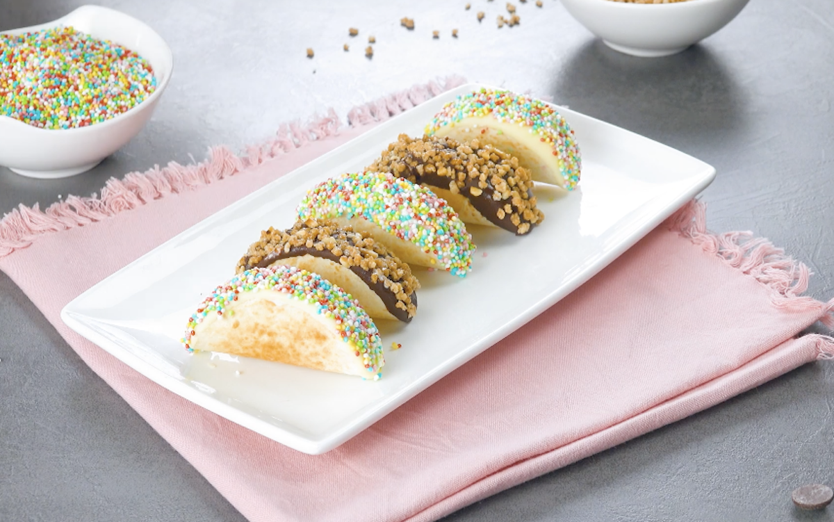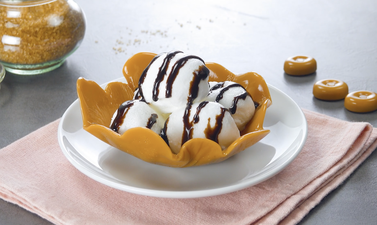 Ja, auch wir lieben Spaghettieis! Dieser Eis-Klassiker kommt einfach nicht aus der Mode und wird bestimmt auch in 100 Jahren noch von Groß und Klein verspeist. Aber immer nur Spaghettieis zu essen, ist doch auf Dauer auch langweilig. Wir zeigen dir deshalb heute drei geniale Desserts mit Eis, die absolut würdige Spaghettieis-Konkurrenten sind. Zum einen gibt es kleine Eis-Tacos und frittierte Eiskugeln in knuspriger Panade. Zum anderen präsentieren wir dir noch eine ganz besondere Idee, wie du Eiskugeln so richtig in Szene setzt, und zwar in einer Schale aus Karamell. Bist du bereit für ein eisiges Vergnügen?
