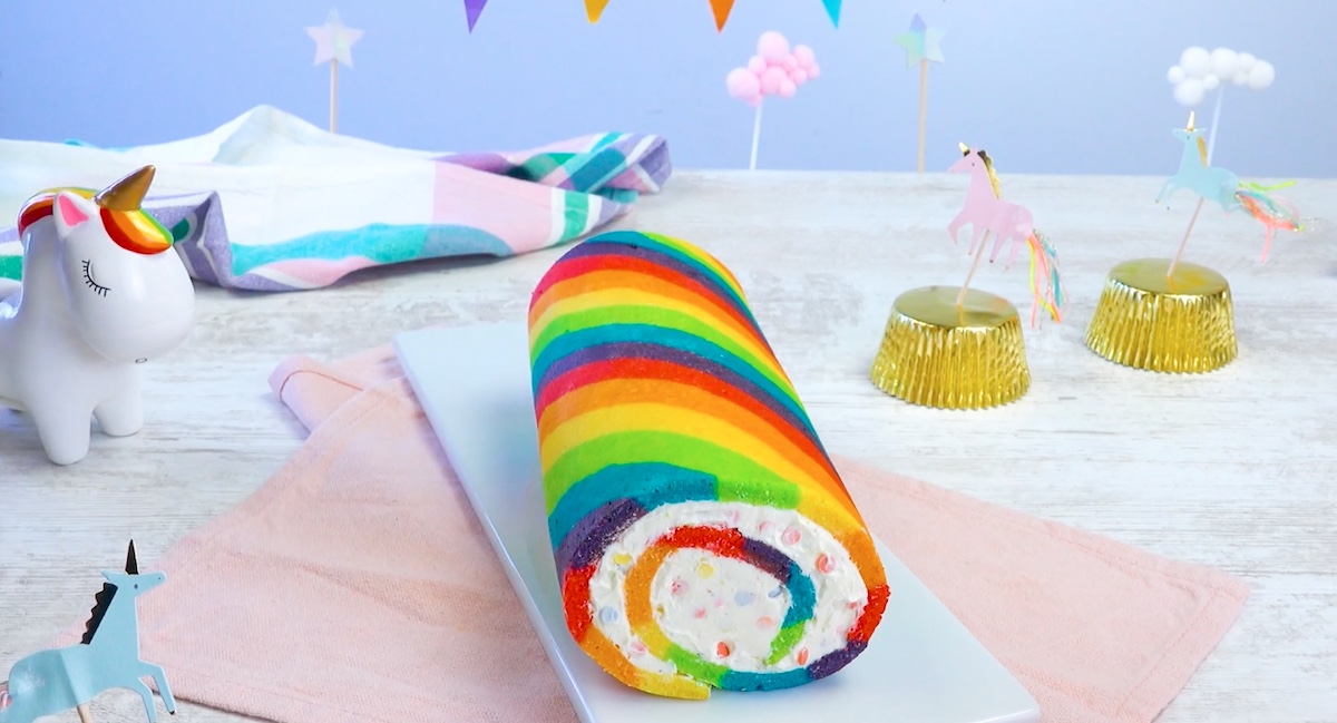Biskuitrolle, Fudge oder Eis – mit diesen 3 farbenfrohen Naschereien kannst du einen Regenbogen von nun an ganz wetterunabhängig genießen, und das nicht nur mit den Augen!