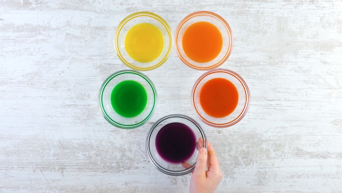 - Lebensmittelfarben (lila, blau, grün, gelb, orange, rot)