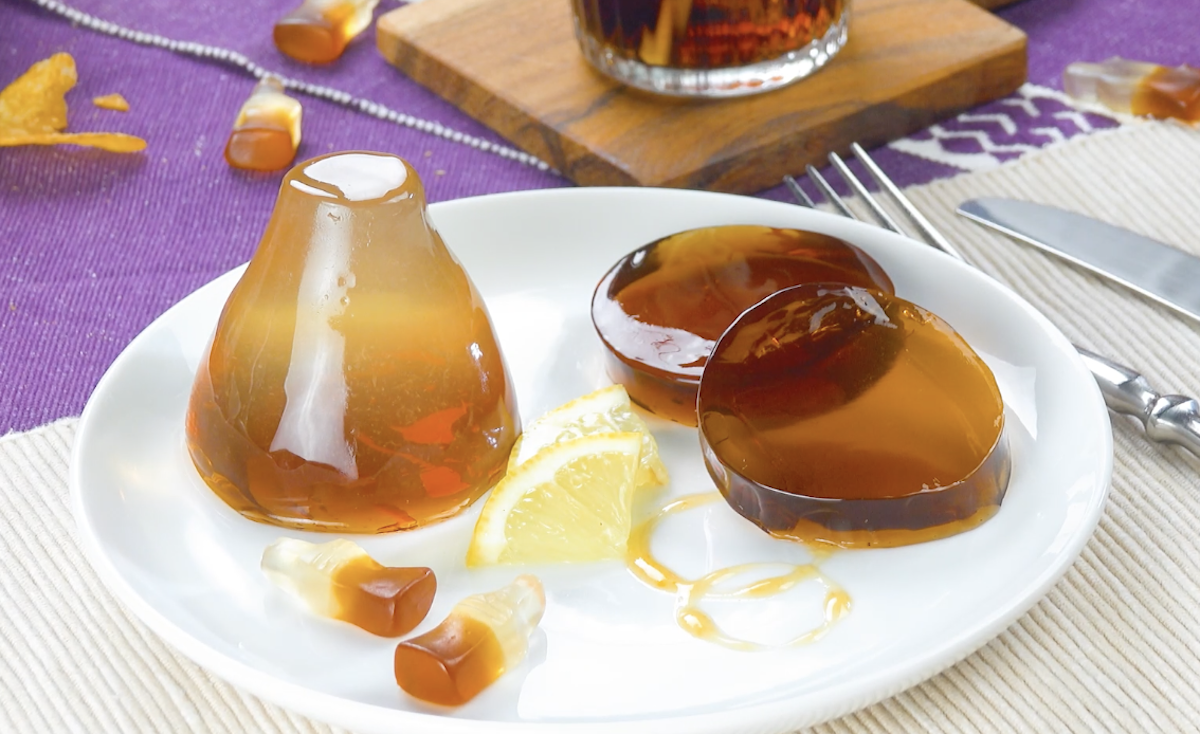 2.4 Zum Servieren schneidest du den Cola-Wackelpudding einfach in Scheiben und servierst ihn mit Zitrone.