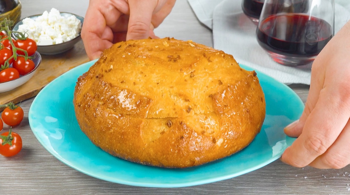 1. Gefülltes Brot mit Tomaten, Feta und Nudeln