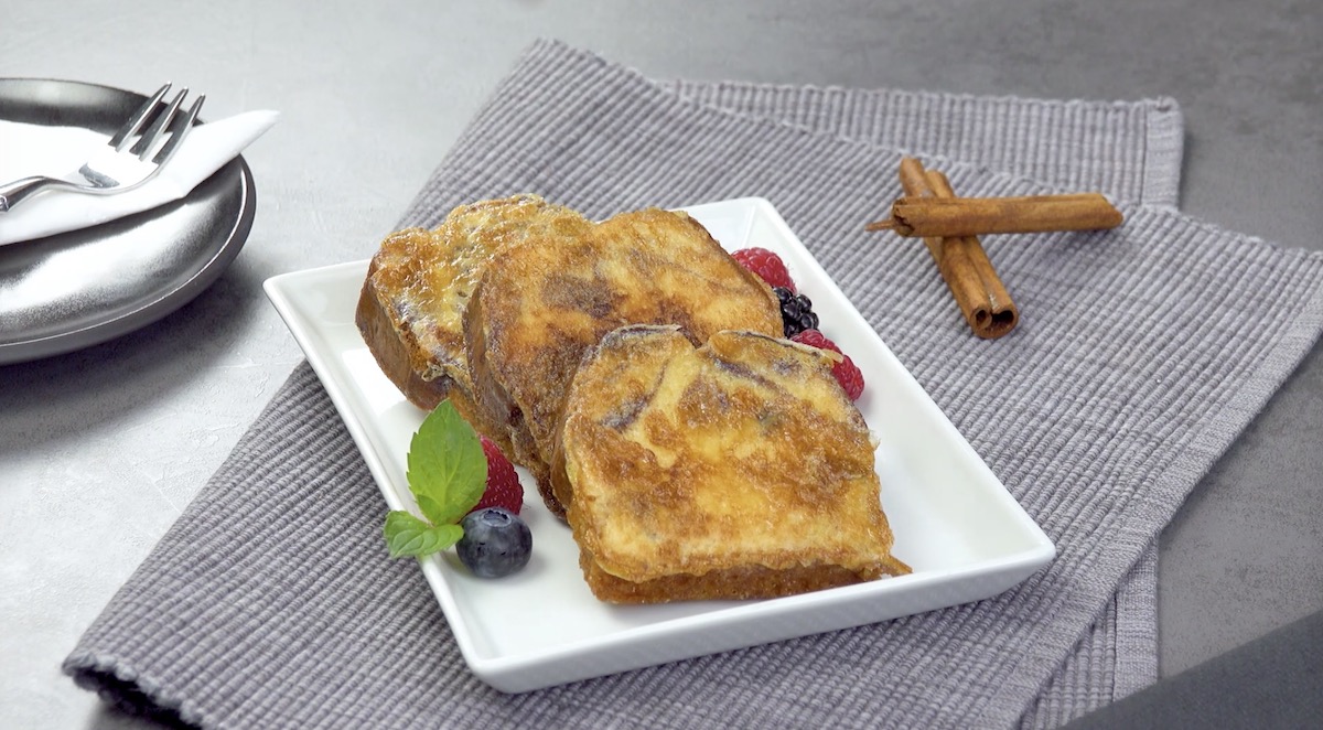 So geht es: Verrühre die Eier mit Milch und Zimt. Ziehe die Kuchenstücke einzeln durch die Mischung und brate sie kurz von beiden Seiten an. Serviere dieses kuchige French Toast am besten mit Ahornsirup.