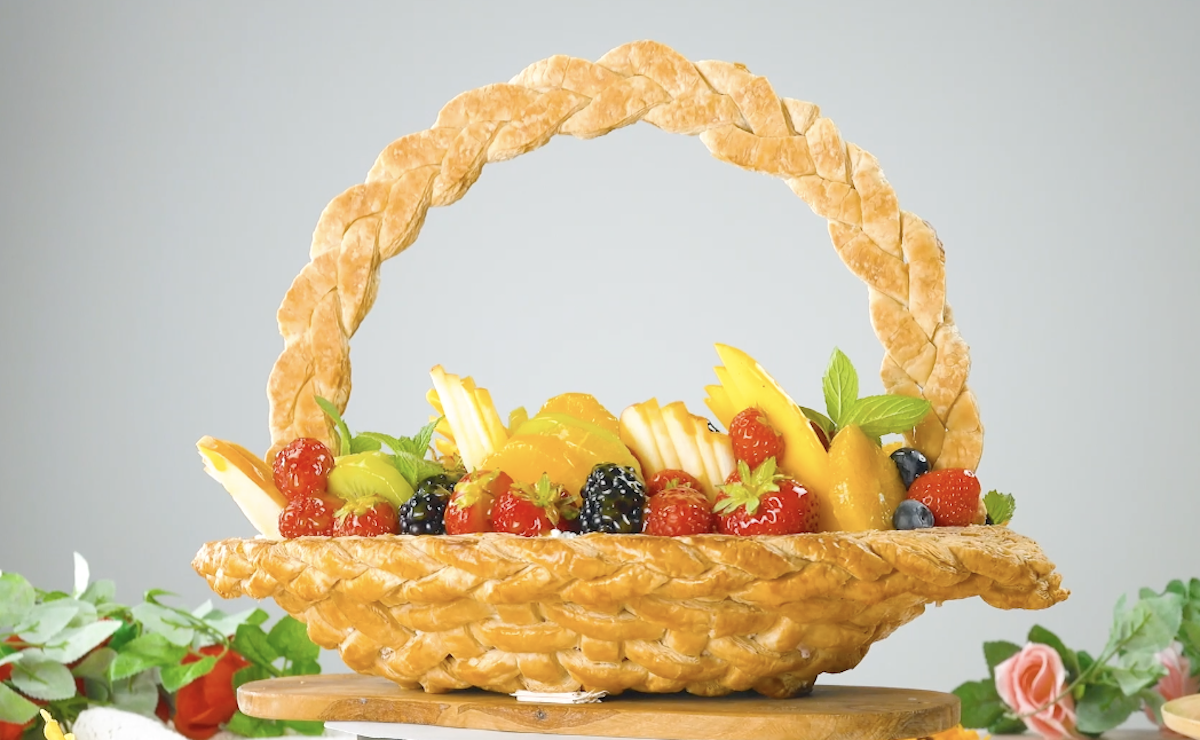 1. Essbarer Obstkorb aus Blätterteig mit Mascarponecreme