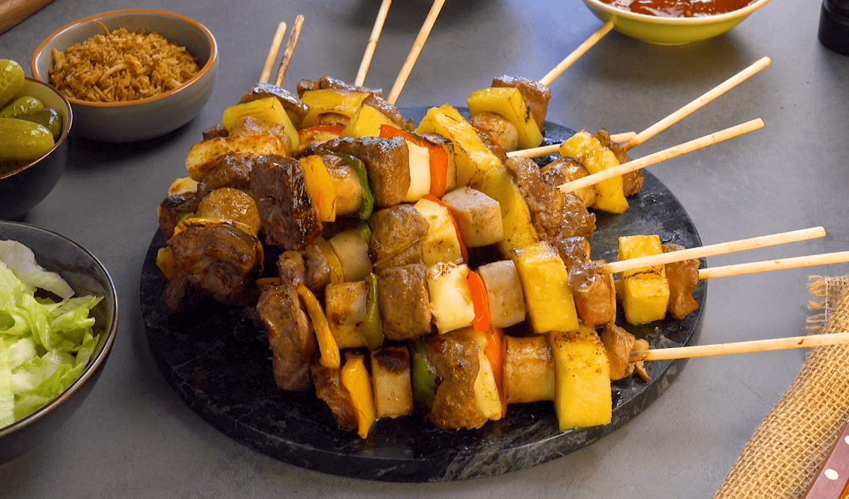 Grillspieße sind eine perfekte „Erfindung“, denn so hat man Gemüse, Fleisch und Obst in einem Rutsch auf dem Teller. Die Zubereitung stellt den ein oder anderen jedoch auf eine harte Probe, dabei ist sie mit unserem Rezept alles andere als eine Herausforderung. Hier findest du das Rezept für die selbstgemachten Grillspieße.