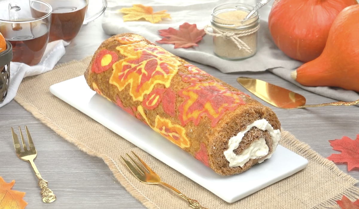Was gehört genauso zum Herbst wie buntes Laub, Nebel und pure Gemütlichkeit? Genau, der Kürbis. Wir backen Biskuitteig mit Kürbis und verzieren ihn mit buntem Laub. Und das Laub ist auch noch essbar! Dann bestreichen wir den Biskuitteig mit Buttercreme und rollen alles zu einer herbstlichen Biskuitrolle zusammen. Ein geniales Rezept für die gemütlichste Zeit des Jahres. Hier findest du das Rezept für die herbstliche Biskuitrolle.