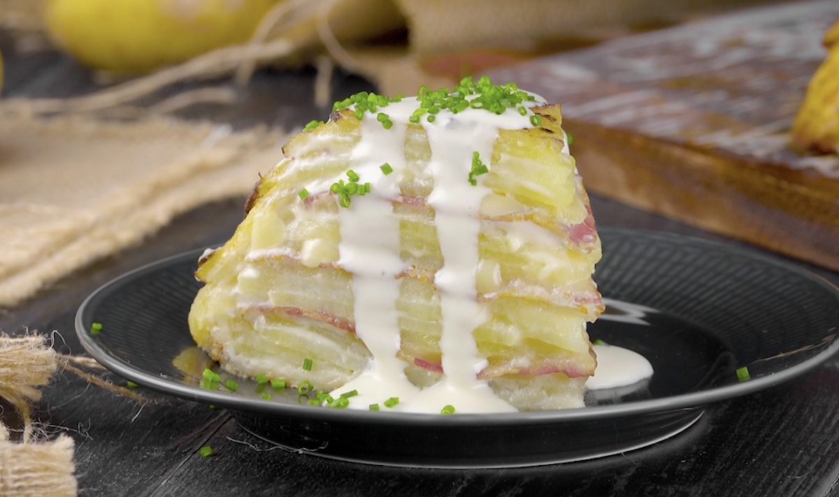 Nichts geht über des Deutschen liebstes Gemüse und Wahlbeilage Nr. 1: die Kartoffel. Welch Vielfalt sich doch in der unscheinbaren Knolle verbirgt, die in völliger Dunkelheit still und heimlich vor sich hin wächst! Auch unser Gericht, das selbstverständlich mit viel Kartoffel aufwartet, zeigt seine ganze Pracht erst, wenn man es aus seinem gläsernen Gefängnis befreit. Hier findest du das Rezept für den Kartoffelkuchen.