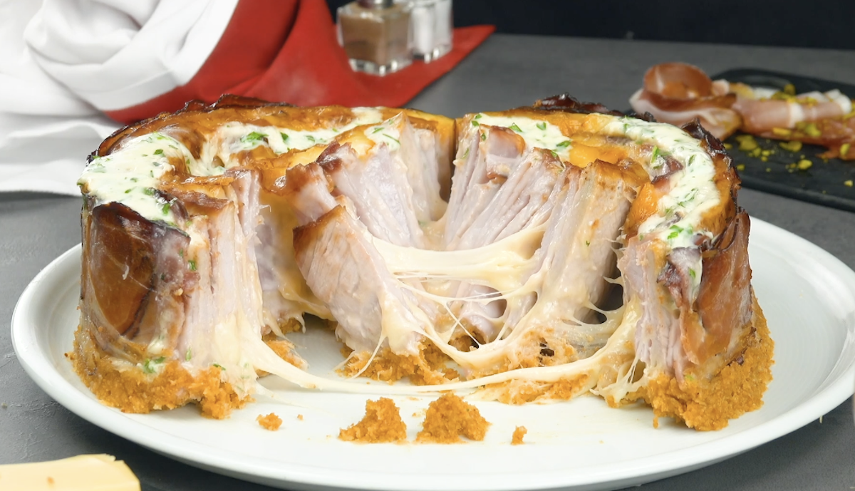 5. Schweinerücken als herzhafter Kuchen mit Käse und Schinken Stell dir vor, dein Zuhause wird durchflutet von einem herrlich-herzhaften Duft, dessen Ursprung in deinem Herd liegt, wo ein außergewöhnlicher Kuchen gerade dabei ist, goldbraun und knusprig zu werden. Ein Kuchen, der aus eingerolltem sowie mit Käse und Schinken belegtem Schweinerücken besteht. Na, läuft dir schon das Wasser im Mund zusammen? Dann lass dich von dem folgenden Rezept inspirieren!