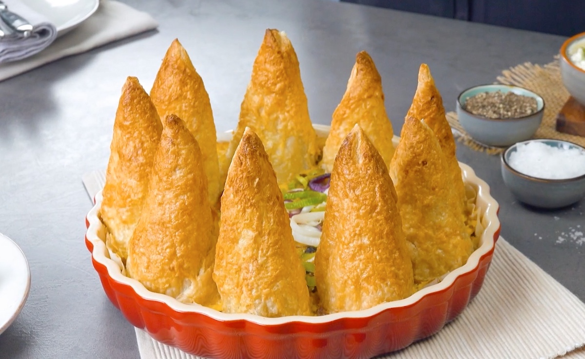 6. Hackfleisch-Quiche mit gefüllten Blätterteig-Hörnchen