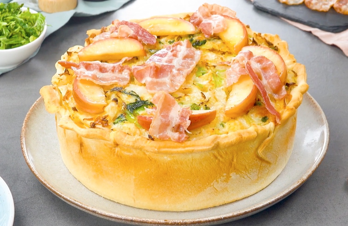 Hier treffen frische Früchte auf knackigen Kohl und köstlichen Pizzateig. Lass dich von diesem preisverdächtigen Rezept inspirieren und freue dich auf eine Quiche, die Pizzateig, Wirsingkohl, Äpfel und Speck auf ganz besondere Weise miteinander vereint.