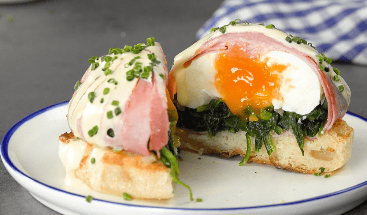1. Eier-Schinken-Turm mit Spinat