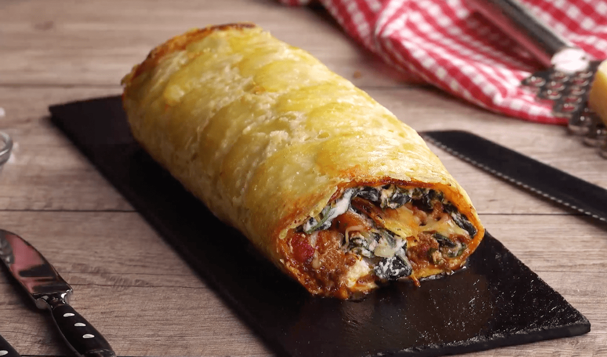 3. Kartoffelrolle mit Ricotta-Spinat-Füllung und Hackfleisch