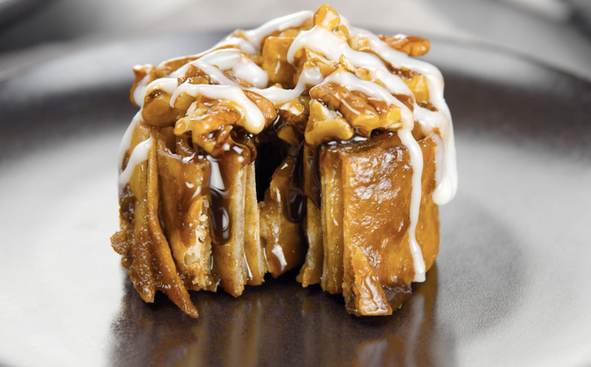 4.6 Stürze die Form und übergieße die Zimtschnecken mit Zuckerguss.