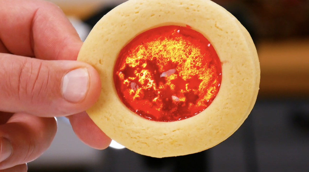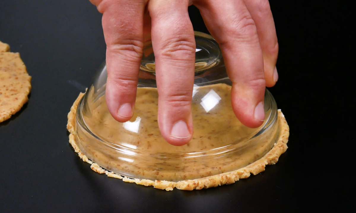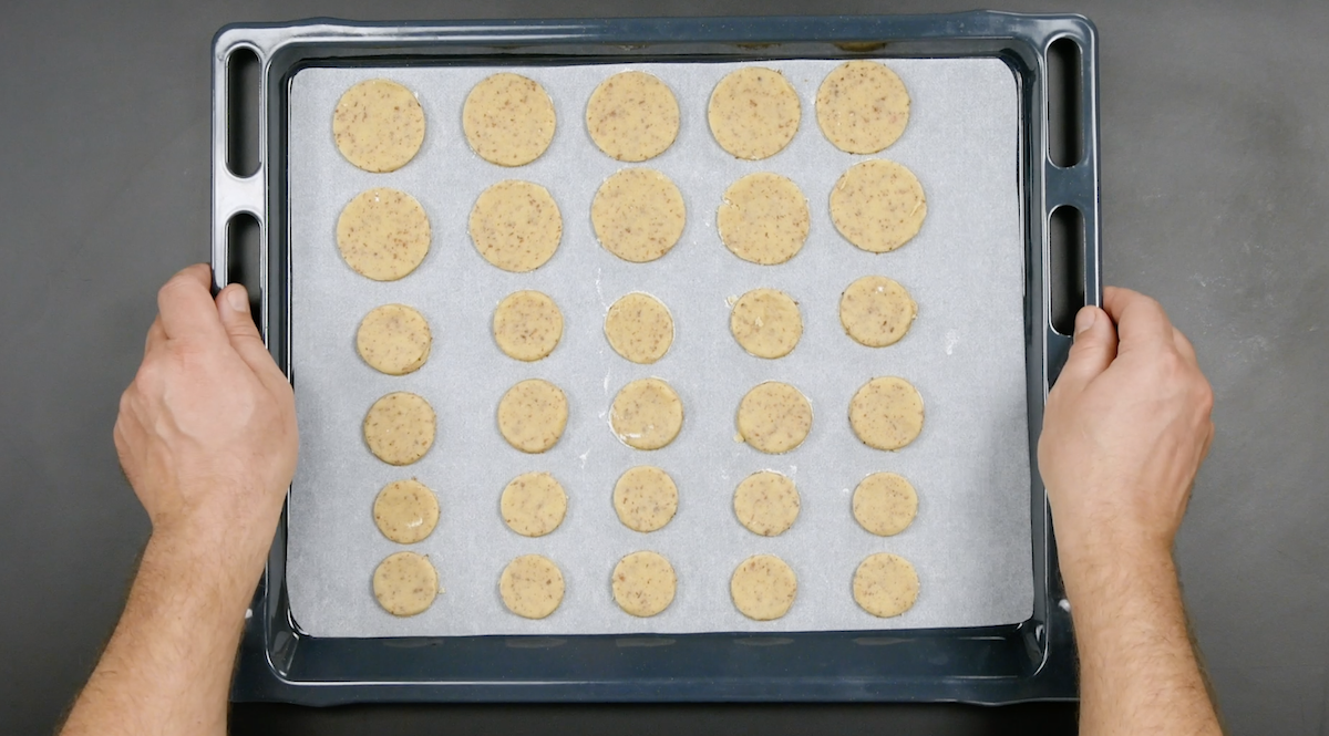 1.1 Forme den Teig zu kleinen Kugeln (etwa Tischtennisballgröße). Drücke die Kugeln dann mit einem Glas platt. Stich mit einer kleinen Glasschüssel Kreise aus dem Teig aus. Backe diese Kreise bei 175 °C Ober- und Unterhitze für 7 Minuten im Ofen, bis sie goldbraun sind. Lasse die Plätzchen dann auskühlen.