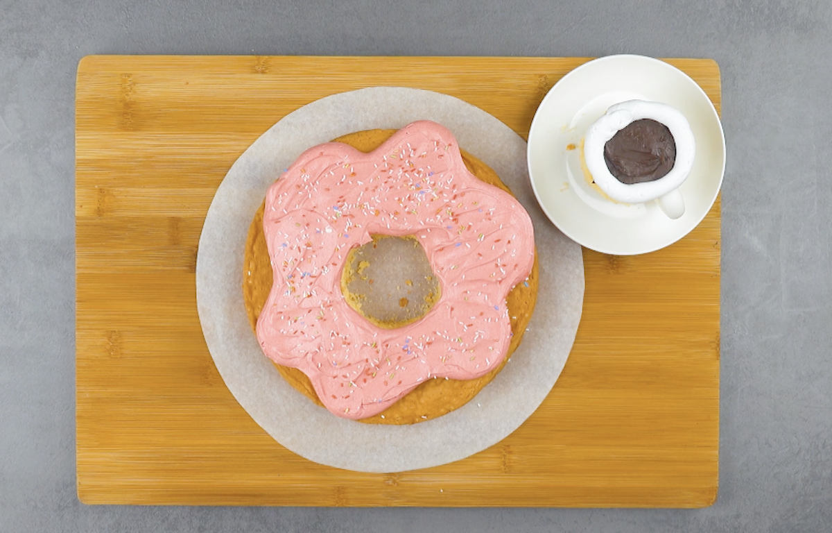 - rosa Lebensmittelfarbe sowie Kakao oder Nutella zum Färben der Creme