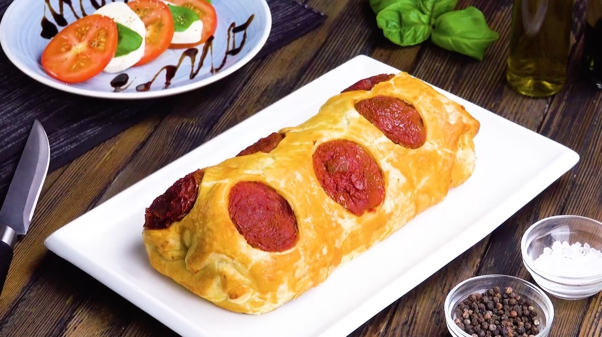 Falls du dich als Erstes fragst, was genau eigentlich ein „Filet Mignon“ ist: Es handelt sich um die Filetspitze, d.h. das schmale, vordere Ende des Filets. Und das Besondere daran ist, dass es noch saftiger und zarter ist als herkömmliches Filet. Das klingt verlockend, oder? Noch verlockender ist es, das gute Stück nach folgendem Rezeptvorschlag zuzubereiten – mit zartschmelzendem Mozzarella, würzigen eingelegten Tomaten und in üppigem Blätterteiggewand.