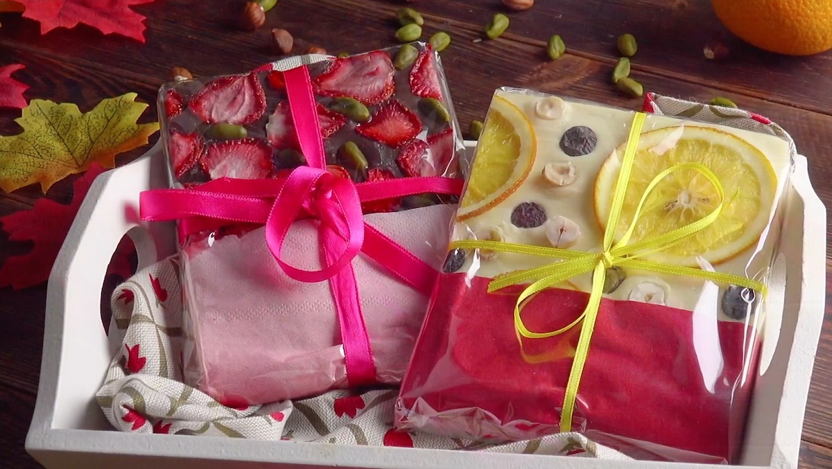 9. Als Geschenk verpackte, selbstgemachte Schokolade