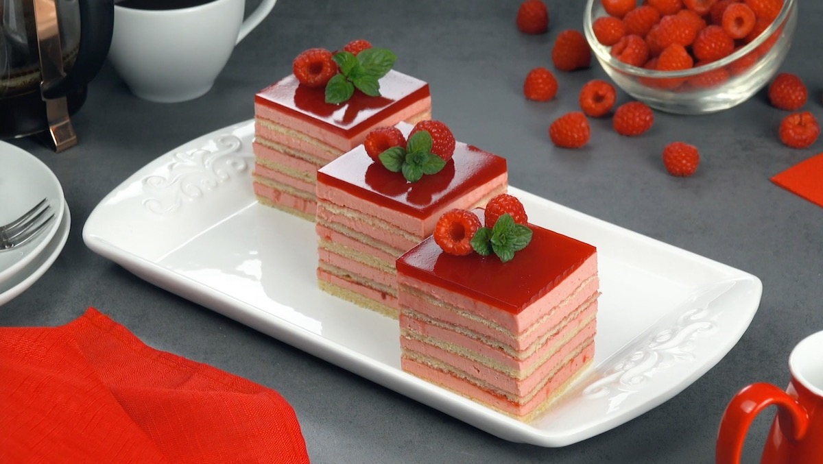 Ein leerer Tetra Pak kann in der Küche äußerst praktisch sein. Folgendes Rezept zeigt dir, wie sinnvoll man einen leeren Getränkekarton ein zweites Mal verwenden kann. Wir benutzen ihn einfach als Form und stapeln darin das wohl leckerste Schichtdessert aller Zeiten. Biskuitteig, Himbeercreme, Himbeermarmelade und Himbeergelee werden am Ende ein wahr gewordener Himbeertraum. Serviere diesen delikaten Nachtisch mit frischen Himbeeren und frischer Minze – und alle am Tisch werden mehr als glücklich sein!