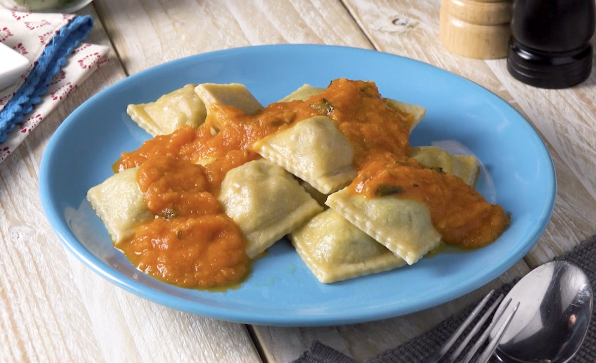 Ravioli selber machen ist dank eines Tricks ganz einfach! Und zwar nimm dir einfach eine Eiswürfelform zu Hilfe. Hier findest du das Rezept für die Ravioli.