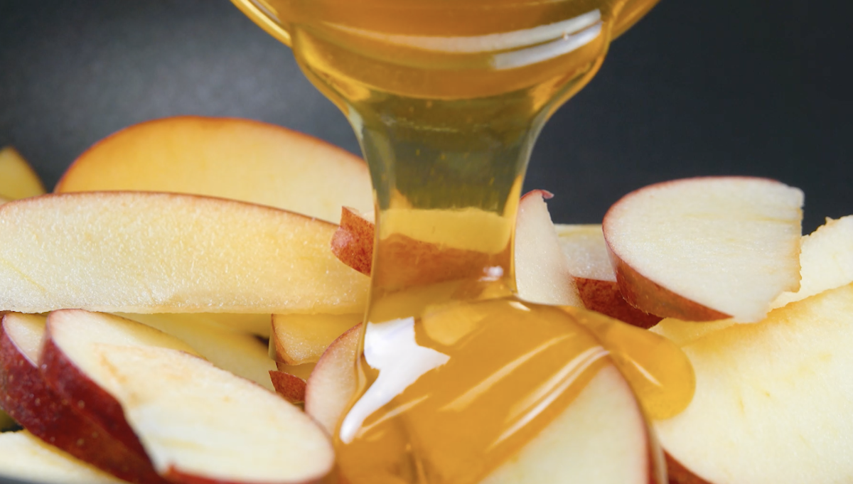 3. Kommen wir nun zur Apfel-Füllung. Entkerne den Apfel, schneide ihn in Achtel und dann in dünne Scheiben. Gib Honig in die Pfanne und schwenke die Äpfel kurz heiß darin. Lasse die Äpfel danach auskühlen.