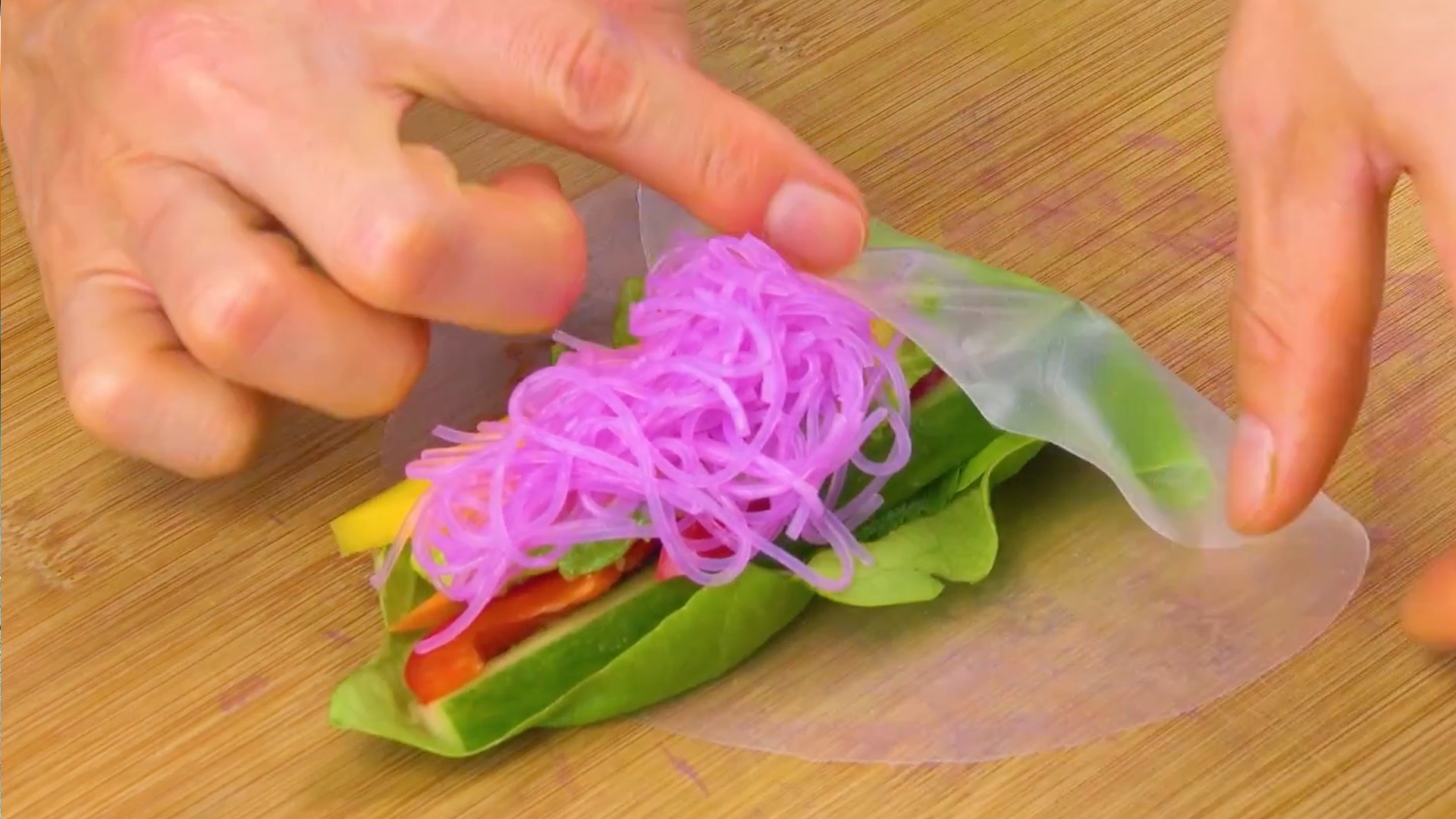 Zentralamerika trifft Asien: Dieses Rezept für Sommerrollen, sozusagen die kleinen Schwestern der Frühlingsrollen, wartet nicht nur mit der obligatorischen Avocado auf, sondern auch mit einer raffinierten Methode, um Glasnudeln zu färben.
