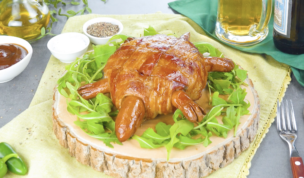 Schon mal eine Schildkröte im Ofen gehabt? Hört sich schlimmer an, als es ist. In unserem Fall ist es nämlich eine Schildkröte aus Hackfleisch und Bacon in Burgerform, quasi ein Bacon-Turtle-Burger! Gefüllt ist das essbare Tier mit Cheddar. Kopf und Beine sind leckere Wiener Würstchen. Ein geniales Rezept für Kinder, die richtig Lust auf Fleisch haben.