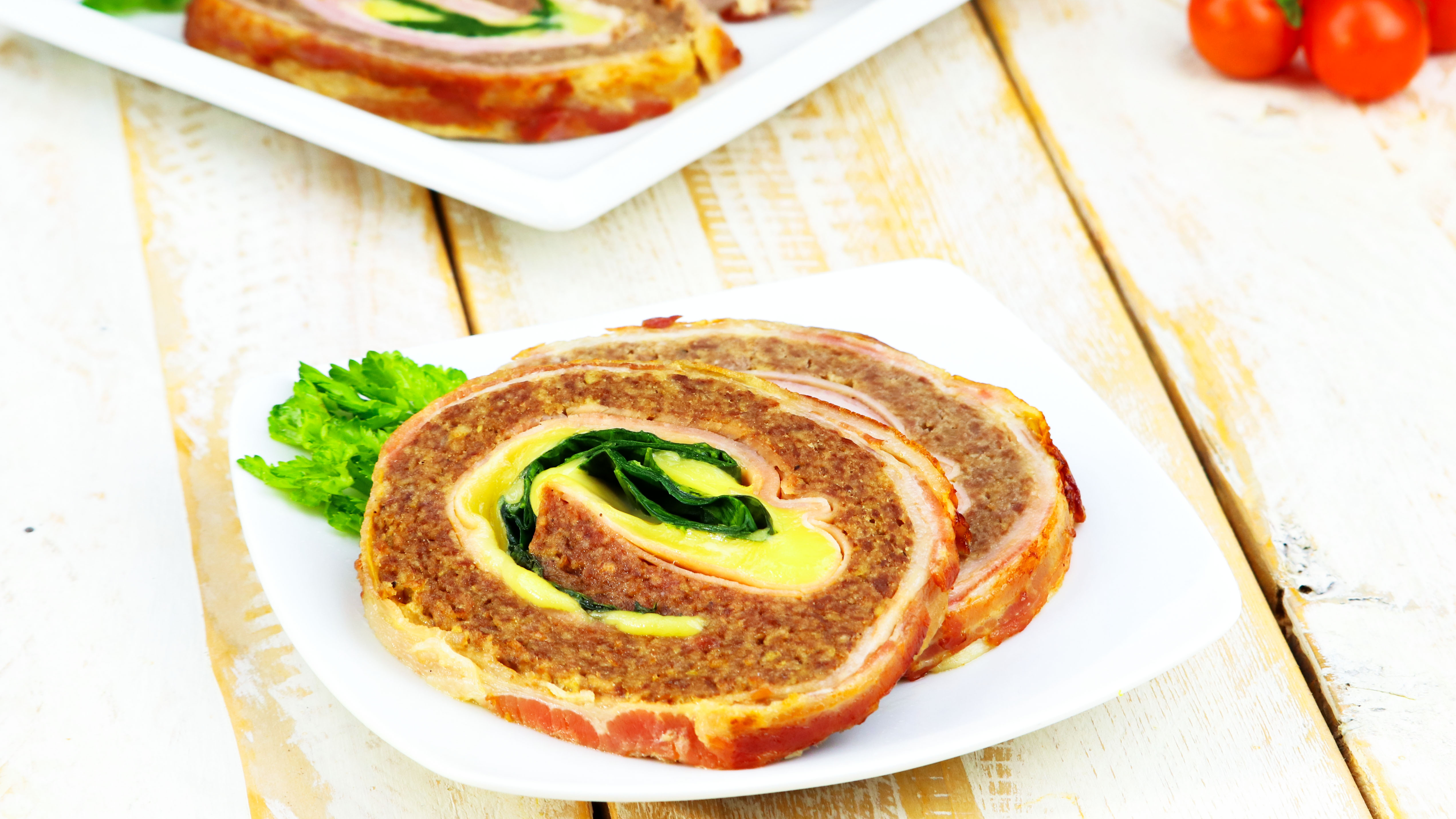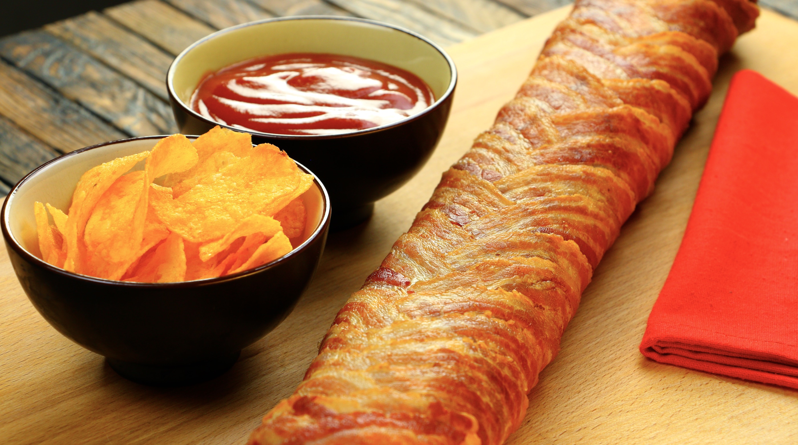 Was ist besser als ein Rezept mit Bacon? Genau, 11 Rezepte mit der knusprig-saftigen Spezialität in Scheiben. Hier können sich Liebhaber der Schwarte richtig austoben. Denn nein, man kann mit den delikaten Fleischstreifen noch viel mehr anfangen, als sie nur in die Pfanne zu werfen und dann mit Rührei zu servieren. Wie du gleich sehen wirst, sind der Kreativität keine Grenzen gesetzt und der Übergang zwischen Handwerk und Kunst ist bei der Zubereitung fließend. Dann wickle, hänge, stapele und flicht doch gleich drauflos! 1.) Saftige Hackbratenrolle Dafür brauchst du: