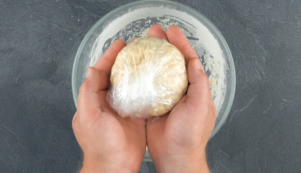 1. Als Erstes bereitest du den Teig zu. Gib Salz in das kochende Wasser, das aber nicht mehr blubbern sollte. Gib dann das Wasser mit dem Mehl in eine Schüssel und knete den Teig für 10 Minuten mit einem Handrührgerät so lange, bis er geschmeidig ist. Forme ihn dann mit deinen Händen zu einer Kugel, packe diese in Frischhaltefolie ein und stelle sie für rund 30 Minuten in den Kühlschrank. In der Zeit kannst du die Kartoffeln kochen und sie durch eine Kartoffelpresse drücken.