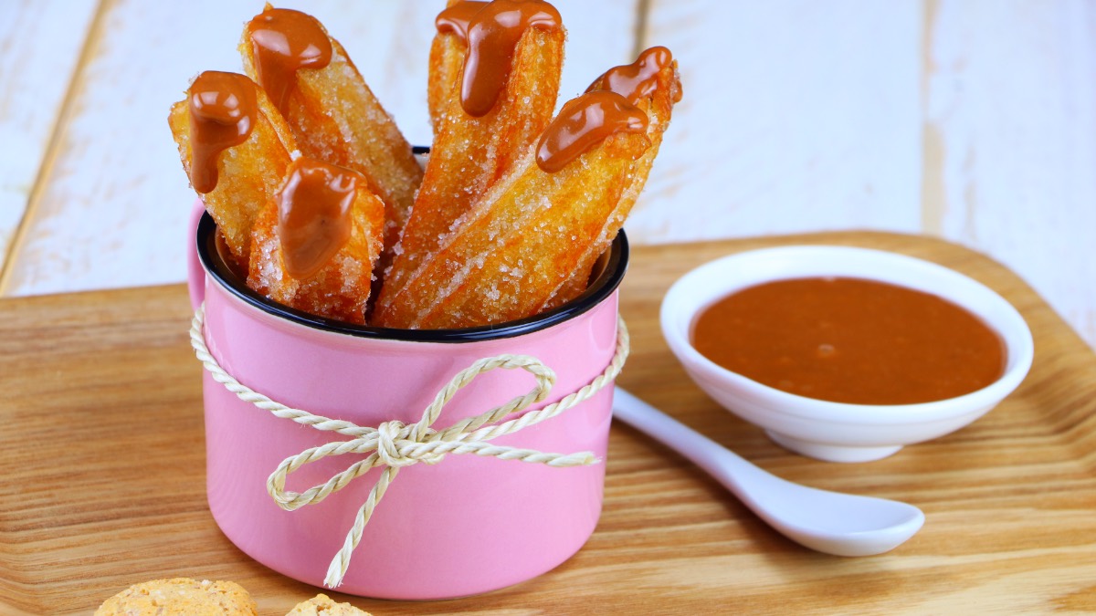Churros haben ihren Ursprung im 16. Jahrhundert in Spanien, wo sie von Hirten als einfaches Essen zubereitet wurden. Das Gebäck war ursprünglich lang und dünn, hat sich im Laufe der Zeit aber zu den dicken Teigstangen entwickelt, die wir heute kennen. Wegen ihrer schnellen Zubereitung und Handlichkeit wurden Churros schnell zum beliebten Streetfood. Serviert werden sie dabei klassisch pur, mit Schokolade oder eben mit Dulce de leche.