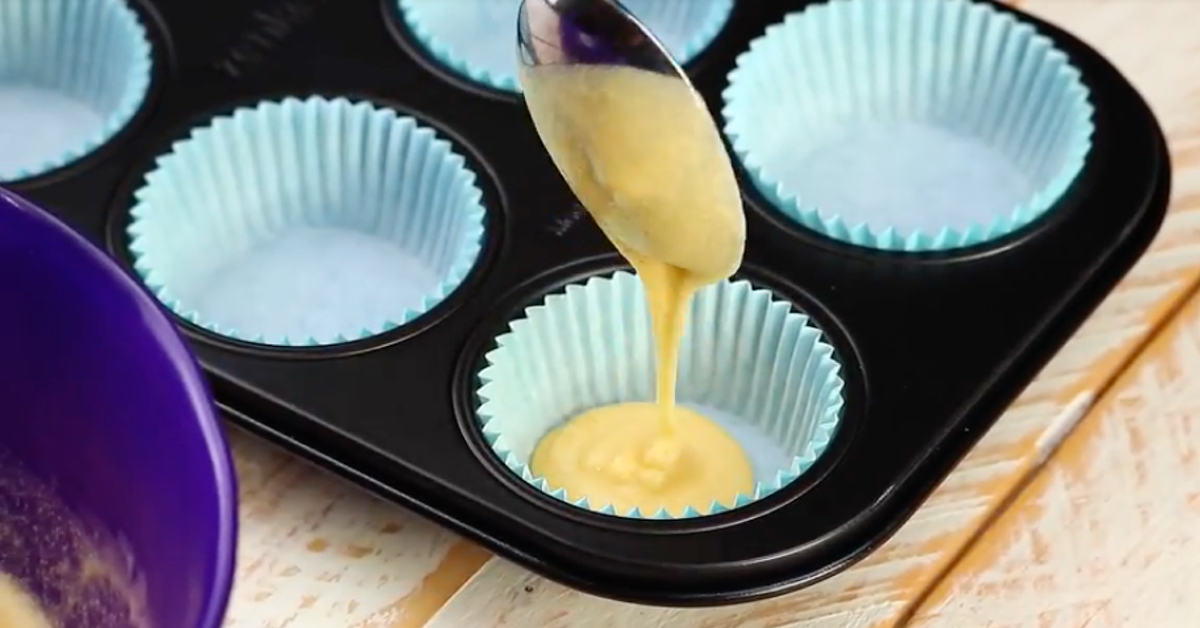 2.) Quirle zum Schluss die Butter unter, fülle den Teig in Muffinförmchen und backe sie im vorgeheizten Ofen für 30 Minuten bei ca. 160 °C (Ober- und Unterhitze).