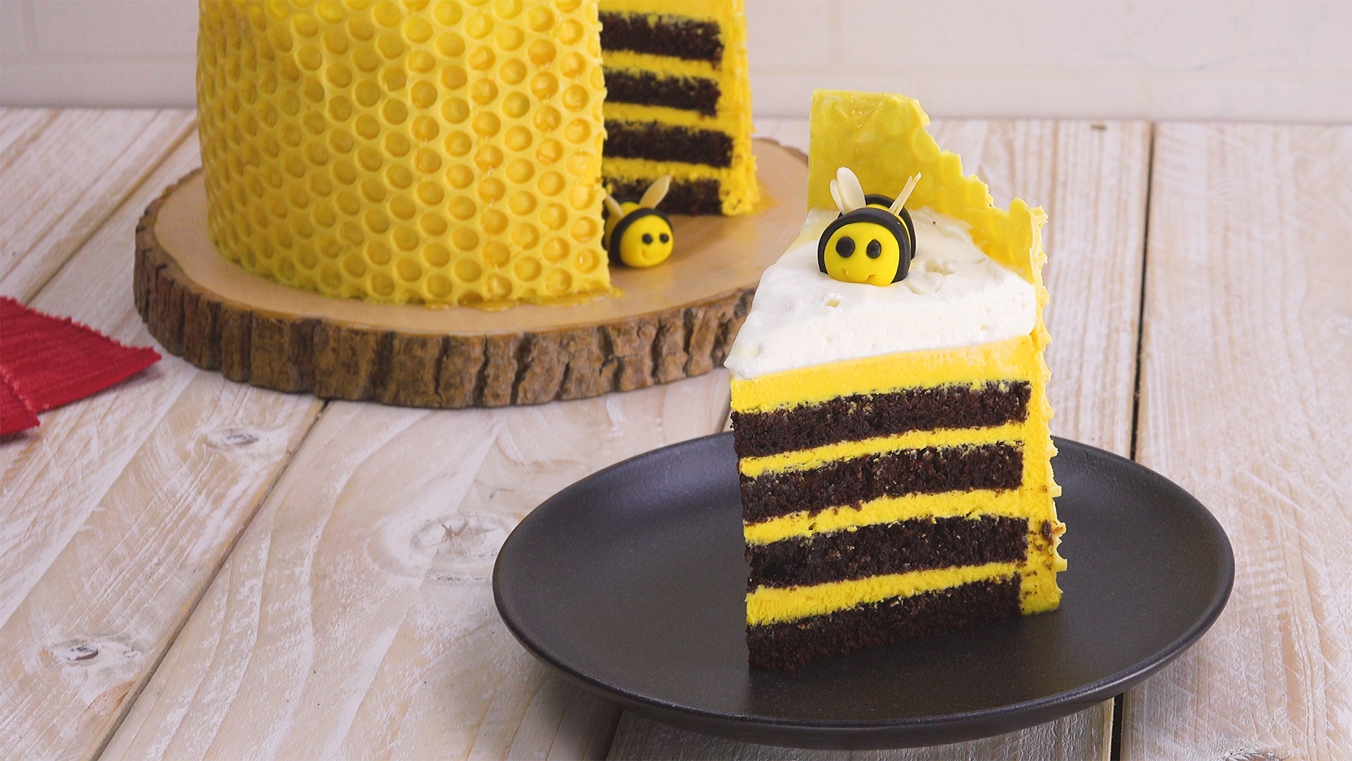 Ein Kuchen soll im Idealfall nicht nur gut schmecken, sondern auch noch hübsch sein. Da Zupfkuchen, Sachertorte & Co. eigentlich immer gleich aussehen, ist es Zeit für eine kleine Abwechslung: Dieser Honig-Bienen-Kuchen schmeckt schokoladig, frisch und ist zudem auch noch ein leuchtend gelber Hingucker mit niedlichen Details, die bei Groß und Klein für Verzückung sorgen.