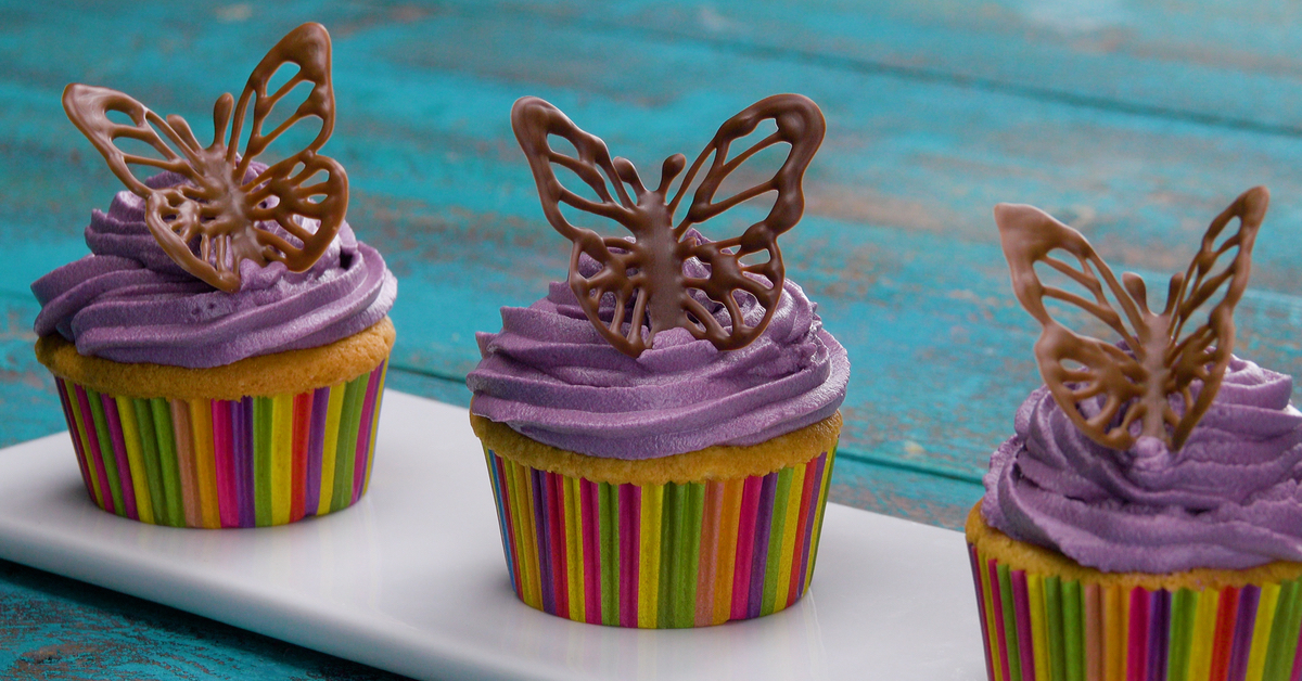 - Darüber legst du Butterbrotpapier und zeichnest mit Schokolade das Motiv nach. Indem du das Buch ein wenig zusammenklappst, erhält der Schoko-Schmetterling eine leichte Wölbung.