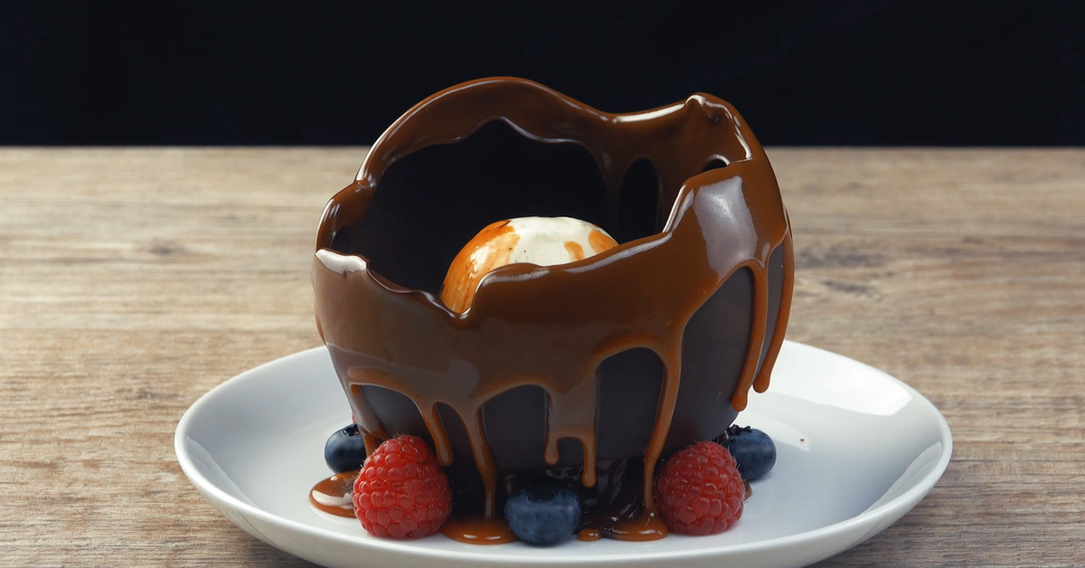 Das komplette Rezept für das Überraschungseis mit dem Schoko-Dom und seinem spektakulären Schmelz-Effekt findest du hier.
