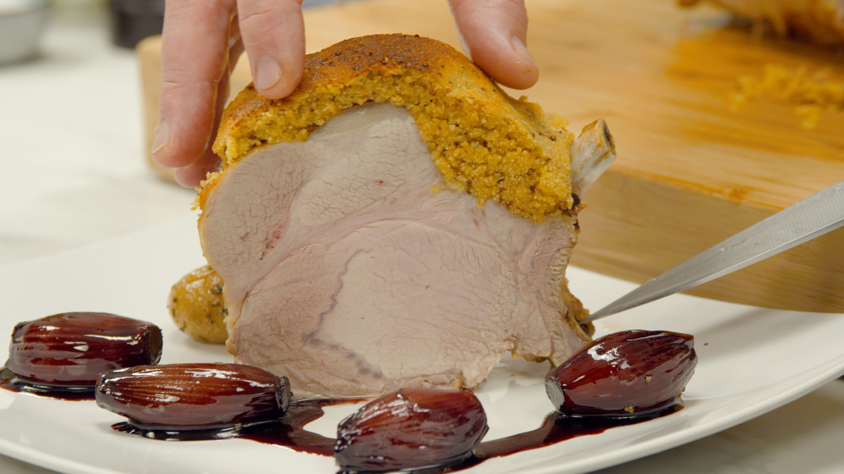 Es gibt bestimme Gerichte, vor denen schreckt man aus Respekt vor der Zubereitung zunächst zurück. Dazu gehört ganz sicher auch der Schweinebraten. Einen saftigen Schweinebraten kennen viele bestimmt noch von zu Hause, sonntags hat die Mutter oder die Oma gerne mal einen wunderbaren Braten zubereitet. Dabei ist es gar nicht mal so schwer, solch ein Festtagsessen selbst zuzubereiten. Unser Video zeigt dir, dass ein Schweinebraten mit Kruste echt kein Hexenwerk ist. Das kannst auch du! Dazu servieren wir Rosmarinkartoffeln und süße Rotweinschalotten. Ein Genuss für alle Sinne!