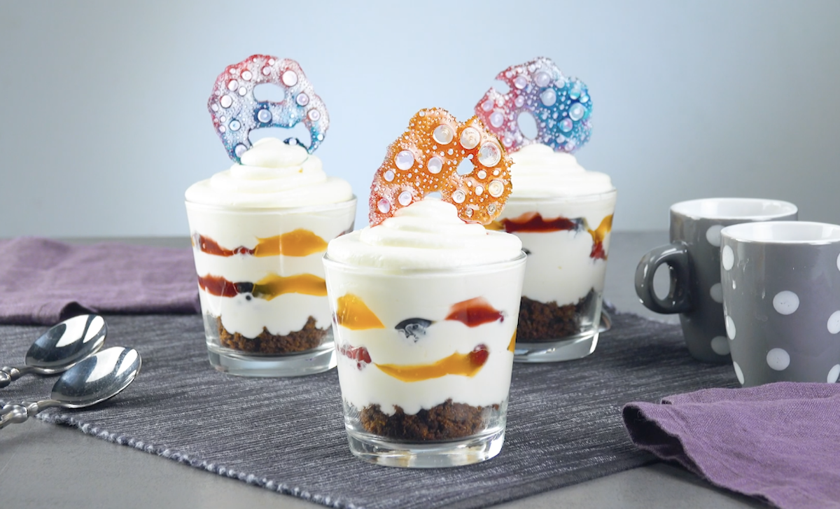 Mit diesen 4 Ideen katapultierst du dich auf jeden Fall in den Dessert-Olymp. So hübsch anrichten ist definitiv eine Kunst. In Zukunft wird es keine langweiligen Dekorationen á la Schokostreusel mehr geben. Ab jetzt gibt es nur noch Dessert-Deko aus flüssigem Zucker.