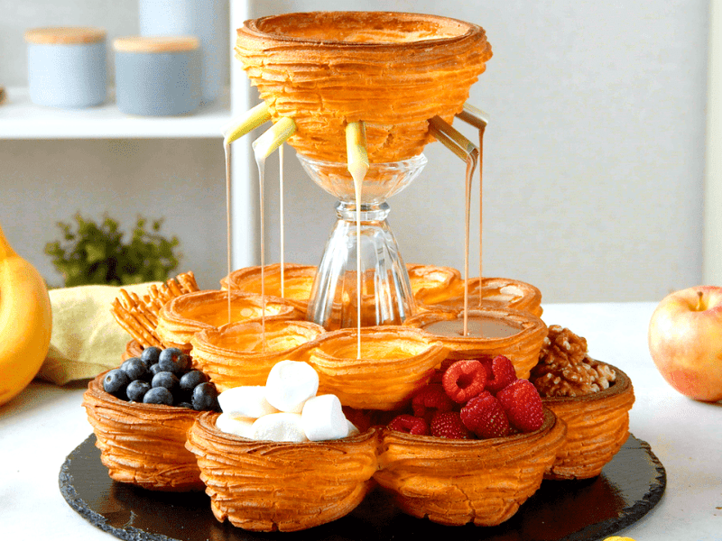 Hübscher Schokobrunnen aus knusprigem Brandteig