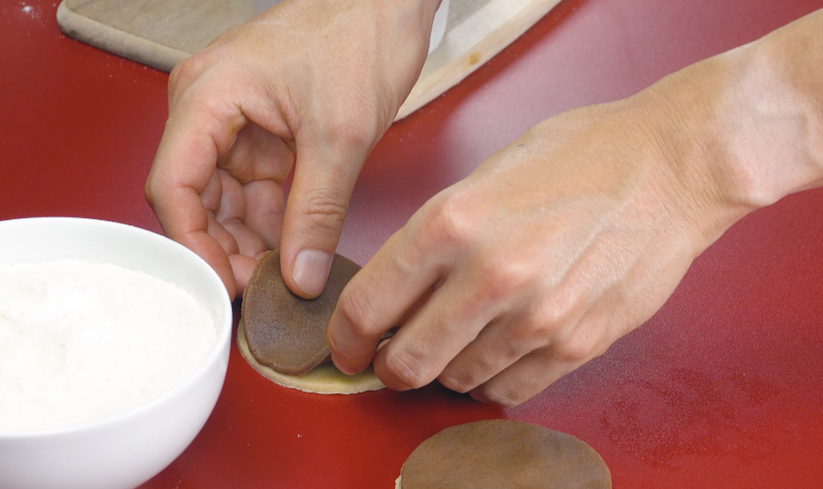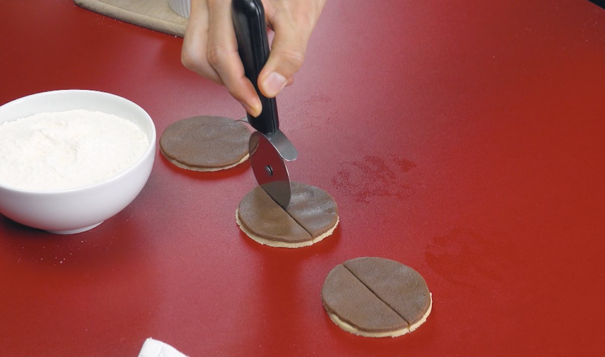 5.1 Stich sowohl aus dem hellen Teig als auch aus dem dunklen Teig 3 gleich große Kreise aus.