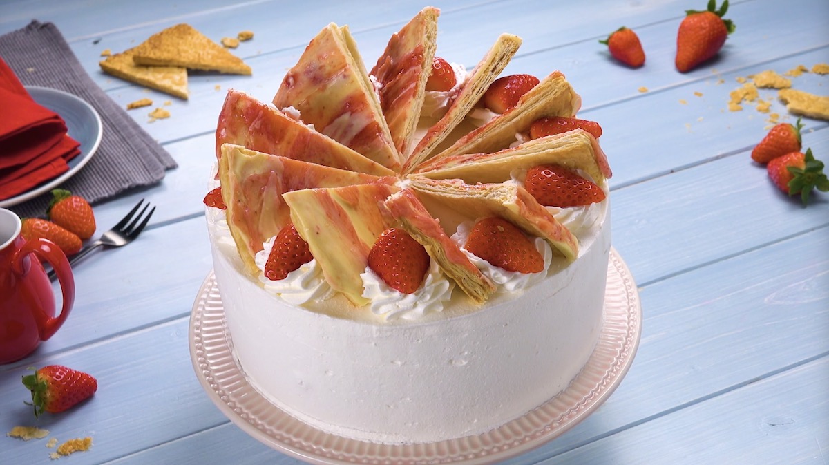 Mit den ersten Sonnenstrahlen im Frühling beginnt sie, die Eissaison. Egal, ob am Stiel, in der Waffel oder aus dem Becher – die eisige Süßspeise erfreut sich weltweit in diversen Geschmacksrichtungen großer Beliebtheit. Doch auch in Tortenform schmeckt die gefrorene Nascherei einfach nur himmlisch, vor allem in Kombination mit knusprigem Blätterteig und frischen Erdbeeren. Dafür brauchst du: