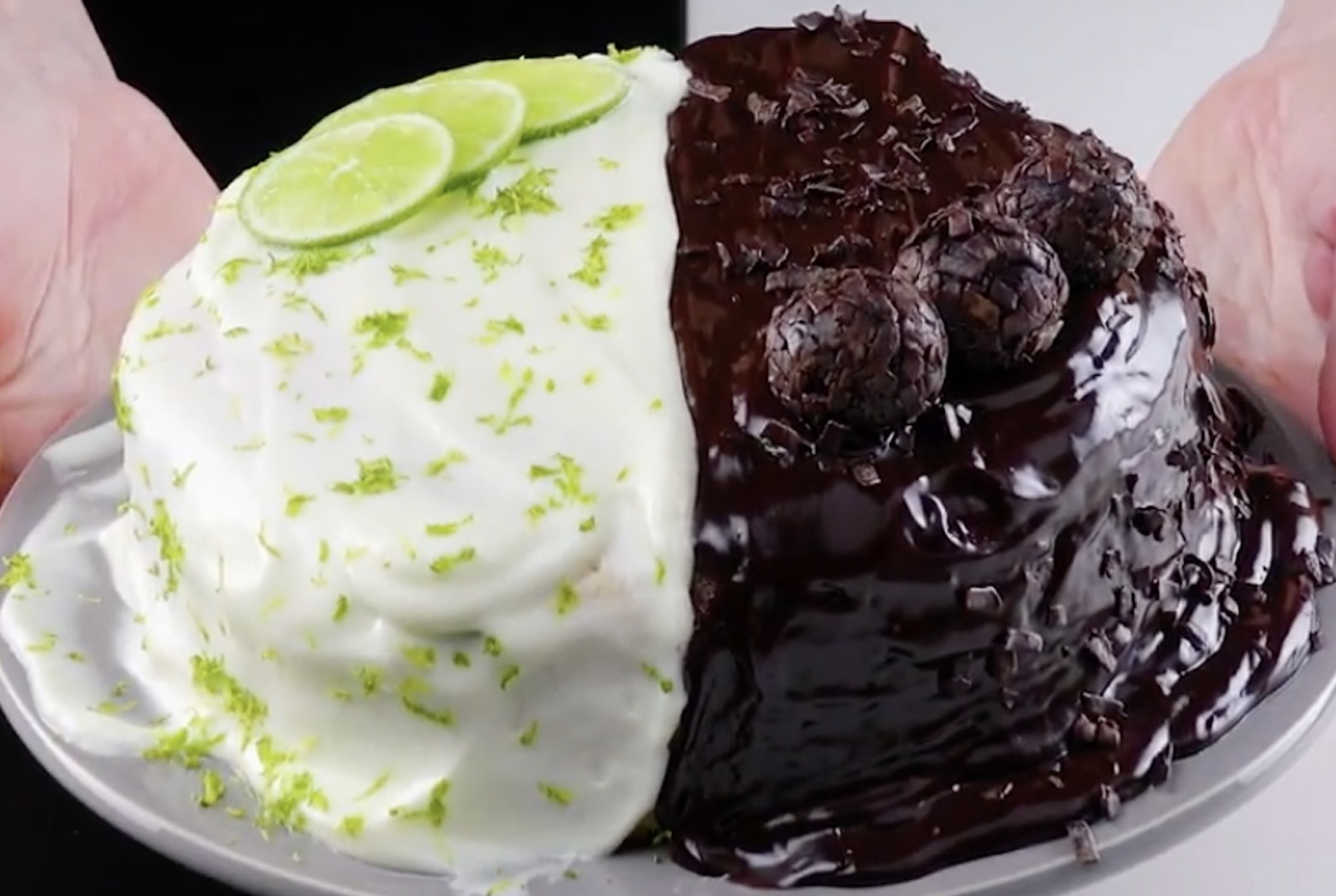 Nicht nur optisch, sondern auch geschmacklich ist dieser Entweder-oder-Kuchen ein echter Leckerbissen. Ideal für alle, die sich nicht entscheiden können.