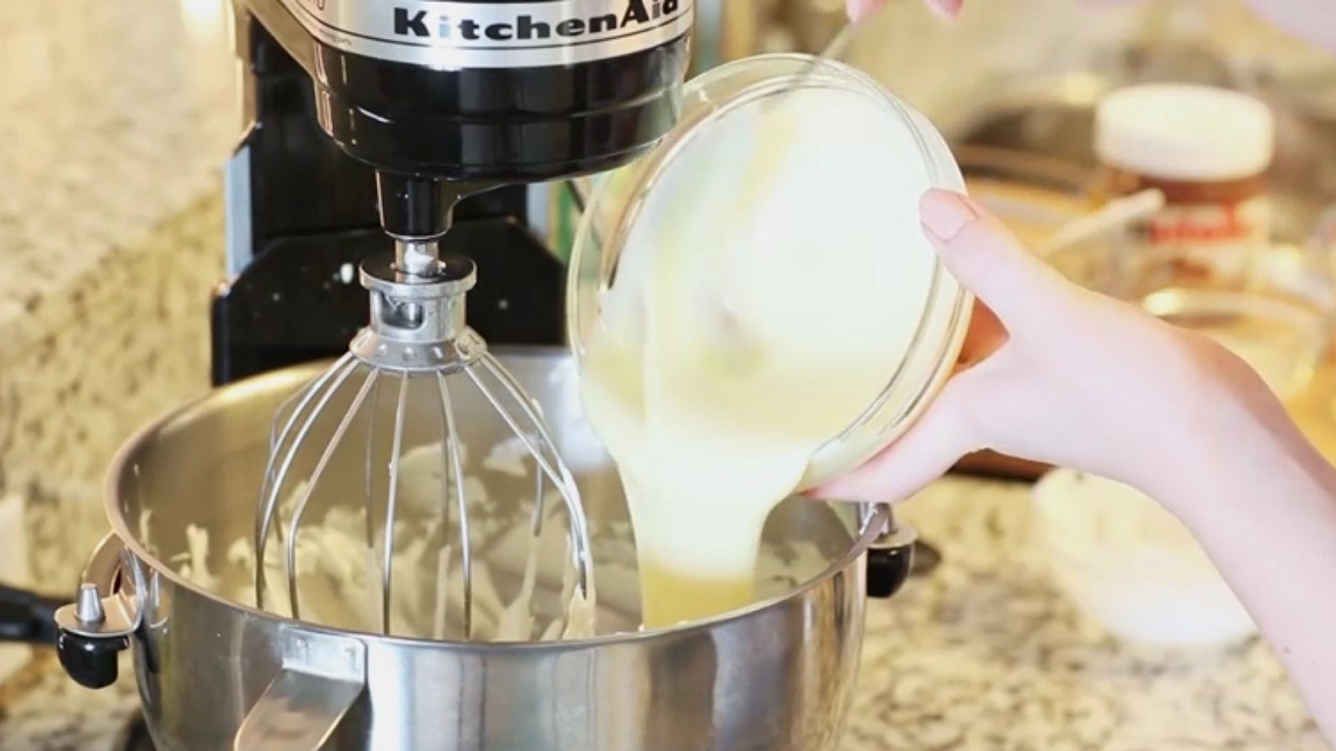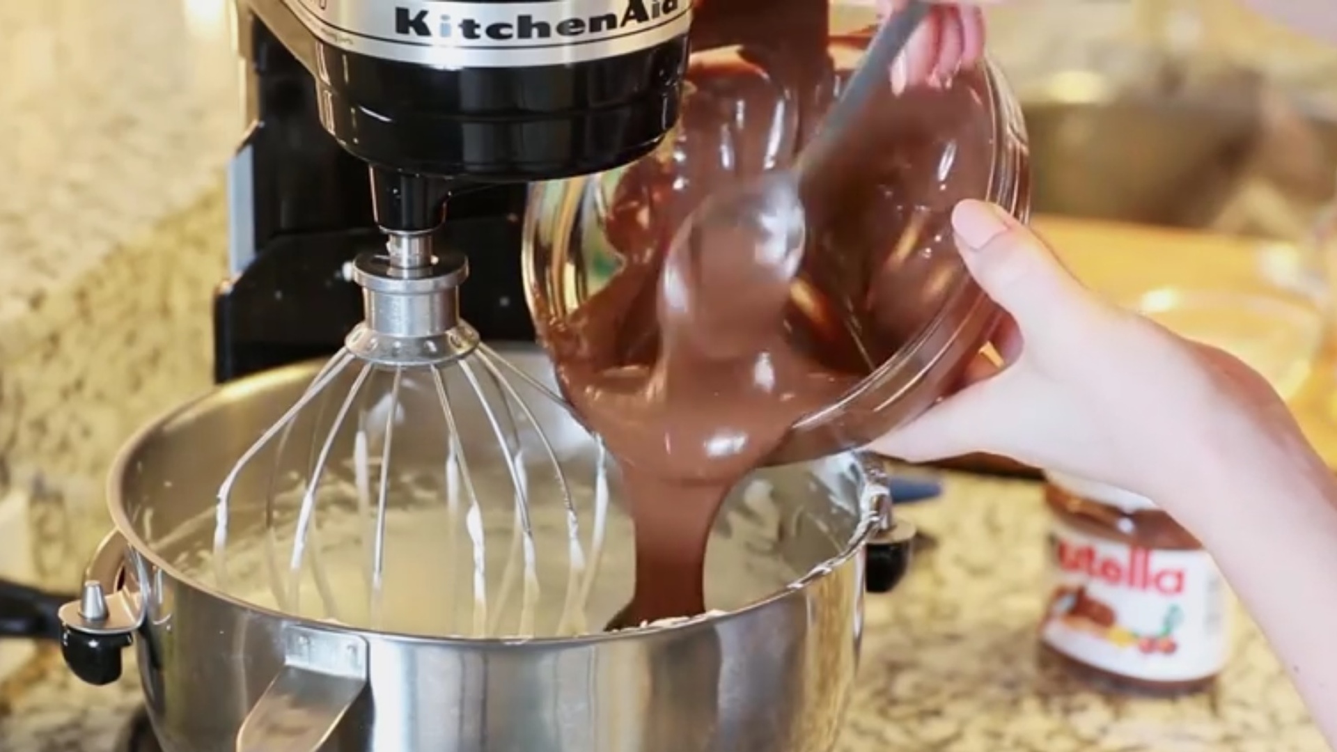 Jetzt gibst du noch das Vanille-Extrakt und die Nuss-Nougat-Creme dazu. Sollte die Nougat-Creme zu fest sein, kannst du sie ganz kurz in der Mikrowelle erhitzen.