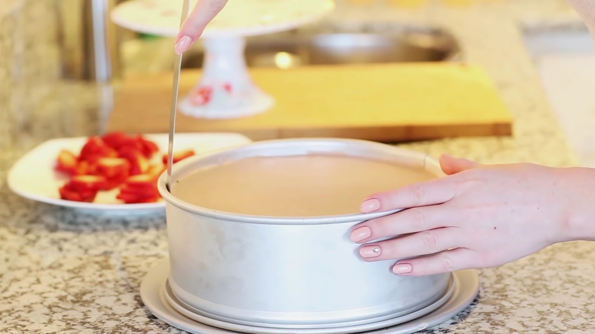 Um die Torte behutsam aus der Form zu holen, löse den Rand zuerst mit der stumpfen Rückseite eines Messer.