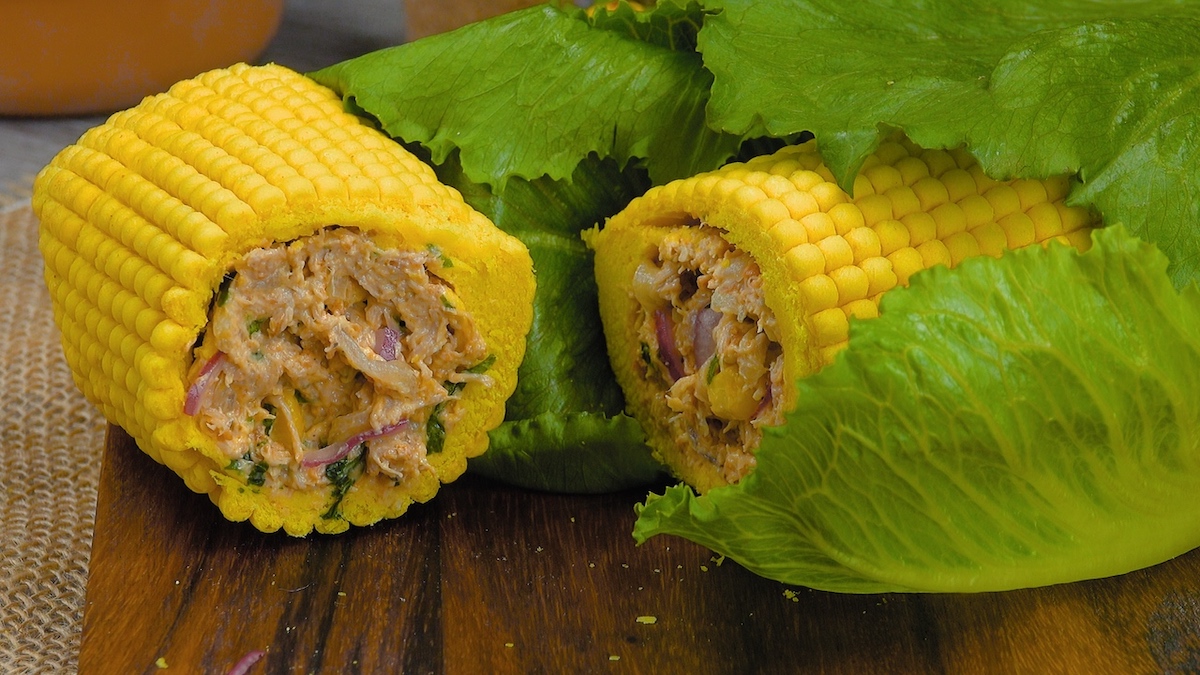 So hast du Maisbrot garantiert noch nie gesehen oder gegessen. Mithilfe eines Drahtgitters verwandeln wir eine einfache Teigrolle in einen falschen Maiskolben. Dieser vermeintliche Maiskolben wird mit einer köstlichen Pulled-Chicken-Frischkäse-Masse gefüllt. Jeder, der den Fake-Maiskolben anschneidet, erlebt eine kleine Überraschung. Eine tolle Idee für ein besonderes Esserlebnis!