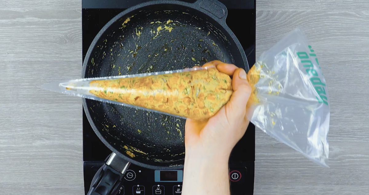 6. Erhitze Pflanzenöl in einer Pfanne. Gib Zwiebeln, Knoblauch, Mais, Pulled Chicken, Pfeffer und Salz hinzu. Erwärme alles zusammen und füge Frischkäse und Petersilie hinzu. Fülle die Masse in einen Spritzbeutel.