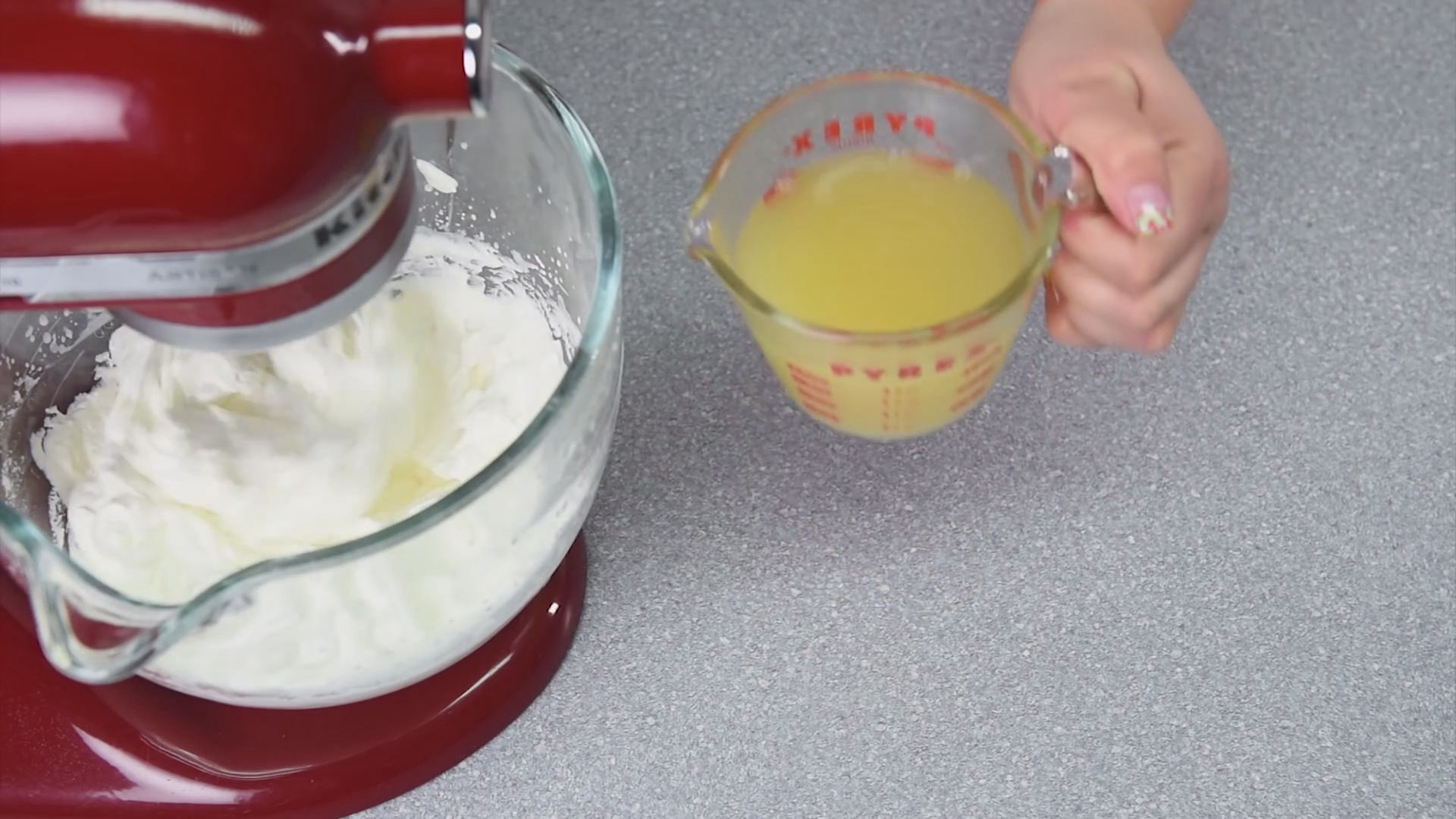 Als Nächstes mischt man die Gelatine mit dem Ananassaft und erhitzt es. Das Ganze kommt abgekühlt in die geschlagene Sahne.