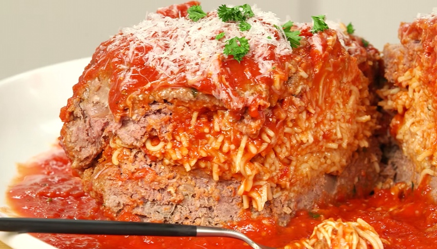 Spaghetti mit Hackfleischbällchen sind ein Standard und Liebling in vielen Haushalten. Doch so lecker das Gericht auch ist, irgendwann hat man es auch über. Deswegen zeigen wir dir hier ein geniales Rezept, um den Klassiker noch einmal neu aufleben zu lassen. Probier doch einfach mal, das Ganze umzudrehen. Anstatt Spaghetti mit ein paar Fleischbällchen machst du eine große Frikadelle mit Spaghetti drin.