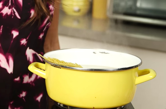 Zunächst kochst du die Spaghetti, bis sie richtig schön al dente sind. Nun gießt du die Nudeln ab und stellst sie zur Seite.