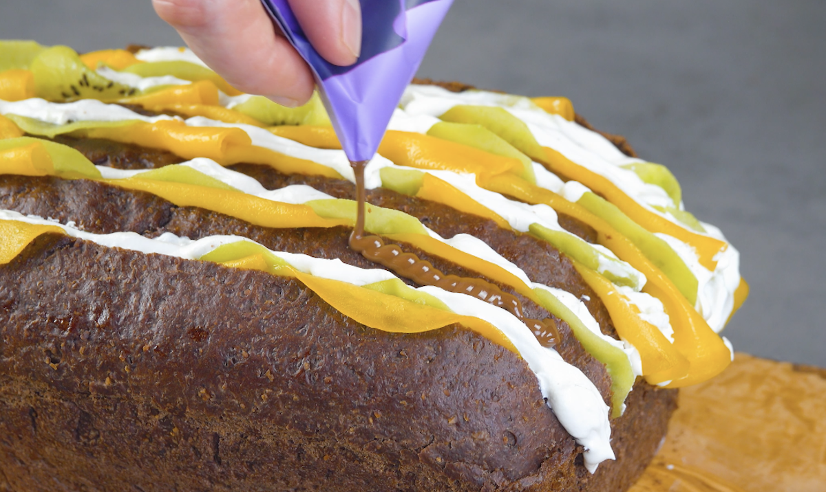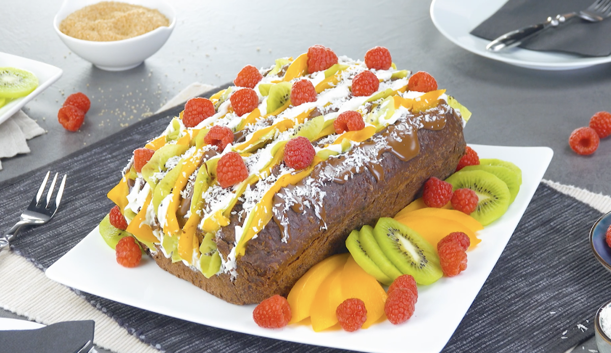 Hasselback-Kartoffeln sind mittlerweile wohl jedem ein Begriff. Mit einem einfachen Trick verpasst man der gemeinen Kartoffel einen einzigartigen Look und einen unvergesslichen Geschmack. Dieser besondere Fächerschnitt lässt sich auch ganz wunderbar bei Kuchen anwenden. Heute backen wir einen fluffigen Schokokuchen aus der Kastenform, schneiden ihn ein, füllen ihn mit Mango, Kiwi und Kokoscreme und garnieren alles mit geschmolzener Schokolade, Kokosflocken und Himbeeren. Ein fruchtiger Genuss, der durch die gefüllten Spalten richtig schön saftig wird.