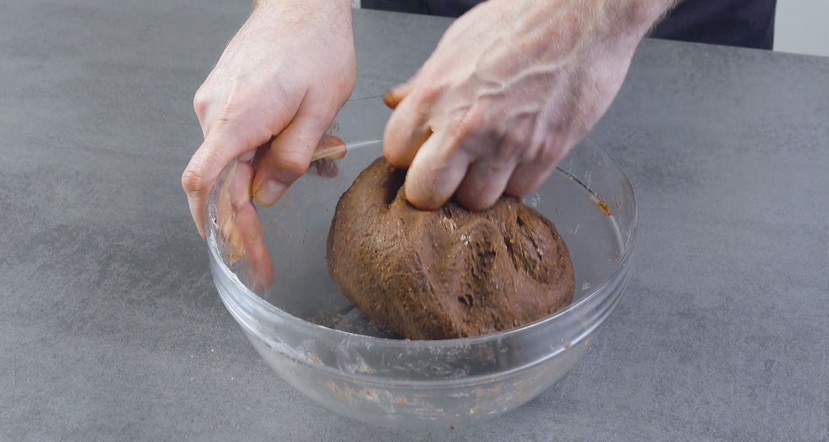 1. Gib alle Zutaten für den Teig in eine Schüssel und verknete alles miteinander. Lass den Teig abgedeckt an einem warmen Ort gehen (oder ihn über Nacht abgedeckt im Kühlschrank ruhen).